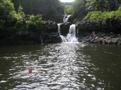 The road to Hana with black sand beaches, banyan trees, and beautiful bamboo forests with huge waterfalls.